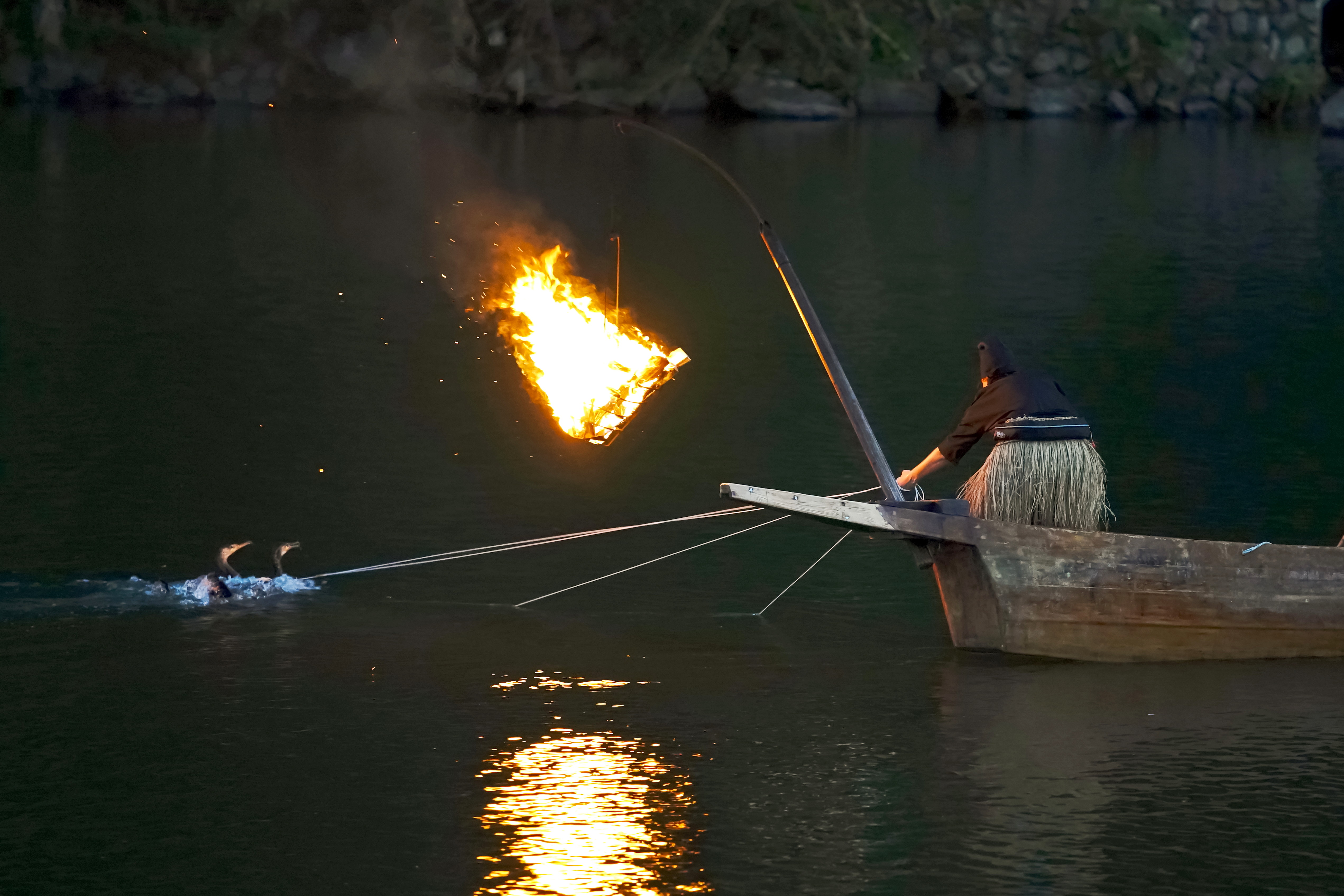 川岸からぼんやり眺めていた鵜飼舟を撮ってきました。